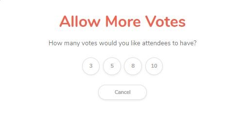 Note: If the initial 3 votes are not used, the 'Allow More Votes' functionality will top up the number of votes to the number selected. Any remaining from the first set, will be lost.
