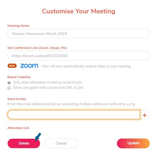 Once attendees have joined the meeting, they can add topics for discussion to the board. Topics can be added by facilitators, attendees and guests and may only be deleted by the topic author or by the facilitator.