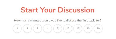 The facilitator then takes a topic card from the ‘To Discuss’ column moves it into ‘Discussing’ and selects the length of initial discussion (between 1 and 30 minutes).
