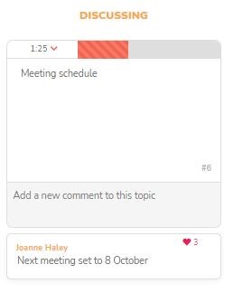 If discussions come to an end before the timer runs out, the facilitator can simply move the topic card to the 'Discussed' column.